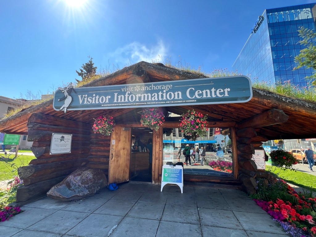 First thing you do when you are in Anchorage is to pay a visit at the Log Cabin Visitor Center. Its on the corner of 4th Avenue and F street. Stock up on travel information, and this is the also the place for your pick up for the ride with Anchorage Trolley Tours.