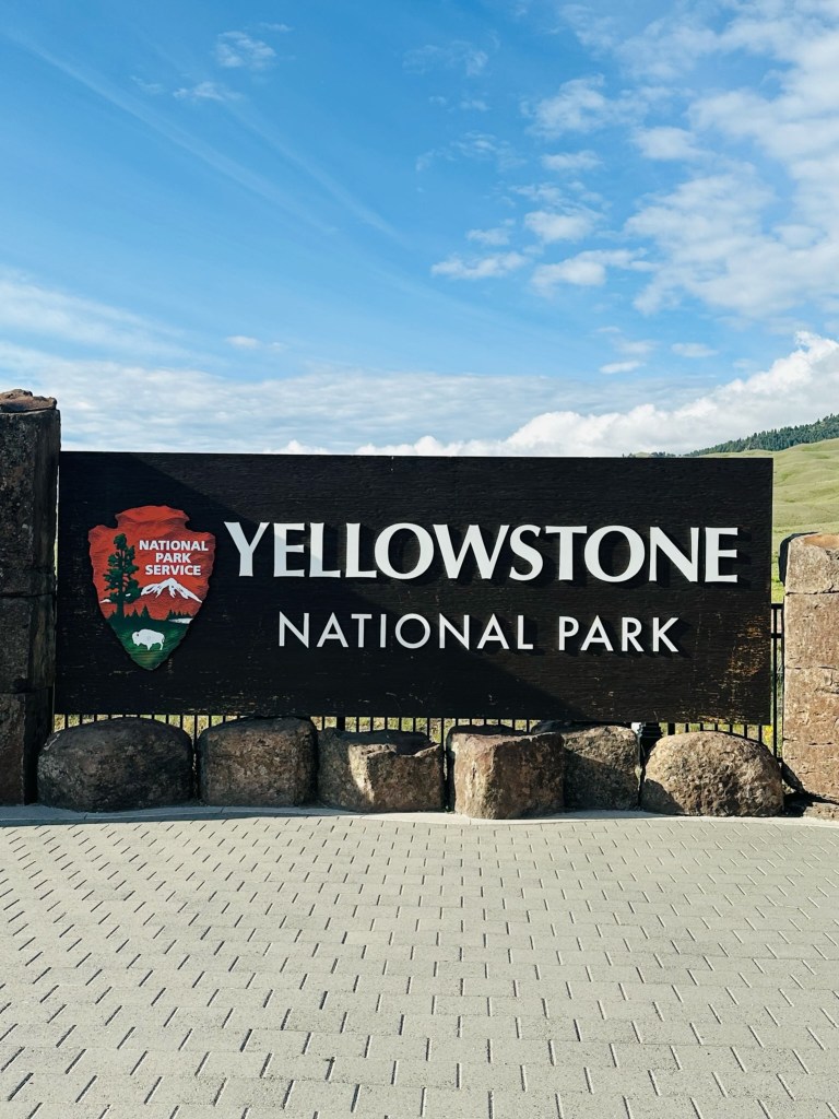 (Left to Right: YNP sign at the North Entrance and Roosevelt Arch)