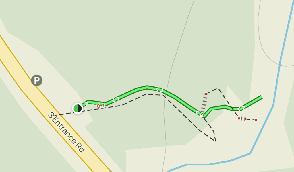 Directions: Moose Falls is pretty close to the South Entrance road of the park and its a 0.1 mile out and back trail and takes about 5 – 10 mins to complete.